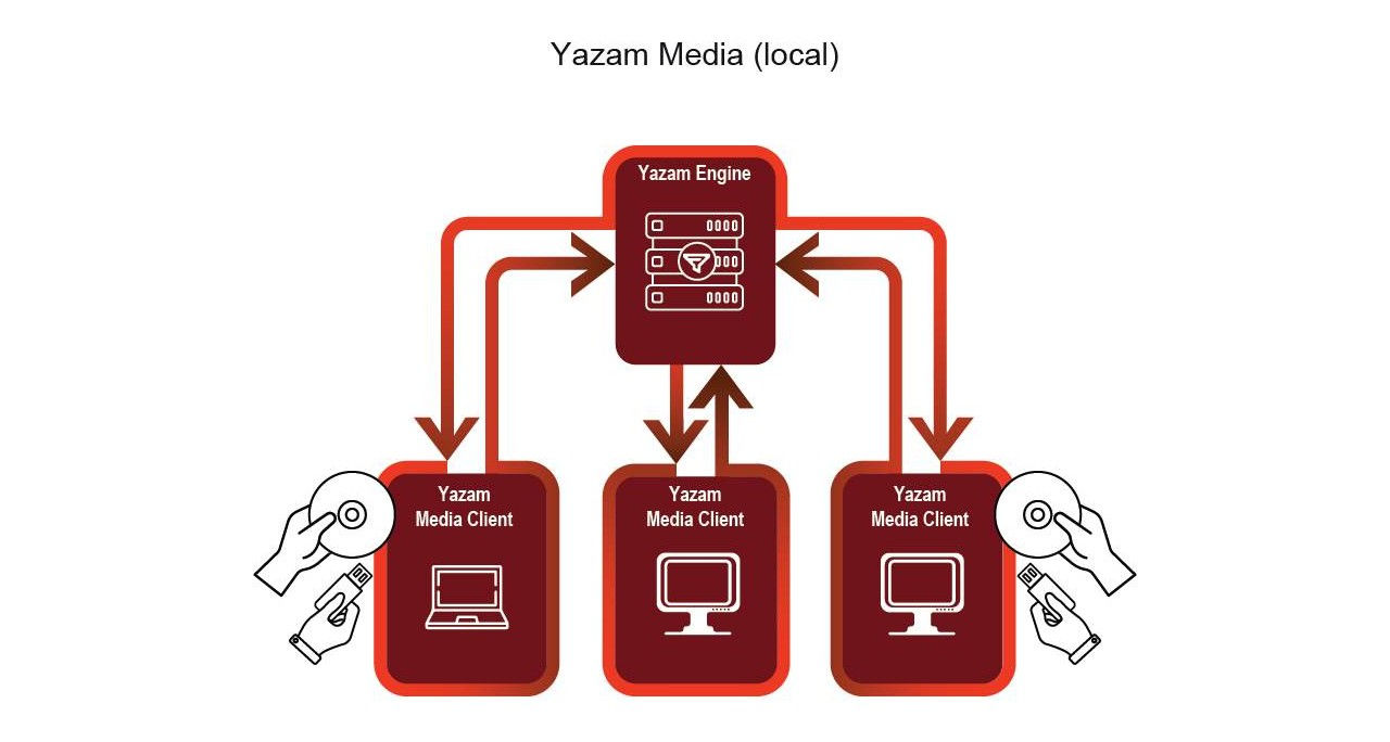 Yazam Media client is installed on the workstations. No loading, no conflicts with other clients.